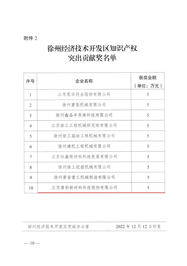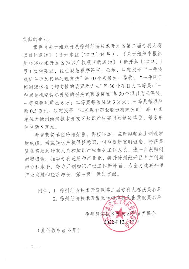 熱烈祝賀我司被評定為“徐州經(jīng)濟技術(shù)開發(fā)區(qū)知識產(chǎn)權(quán)突出貢獻獎單位”