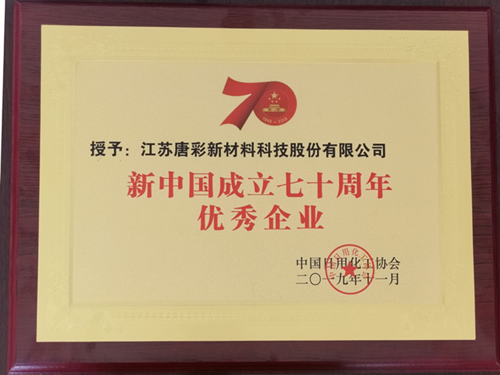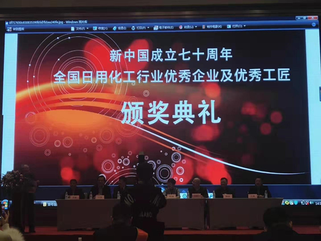 2019年11月7日,在中國日用化工協(xié)會召開的2019年會暨新中國成立七十周年全國日用化工行業(yè)優(yōu)秀企業(yè)和優(yōu)秀工匠頒獎典禮上,經過組織推薦及專家評審,我司從眾多企業(yè)中脫穎而出,被授予“新中國成立70周年優(yōu)秀企業(yè)(單位)”榮譽稱號。